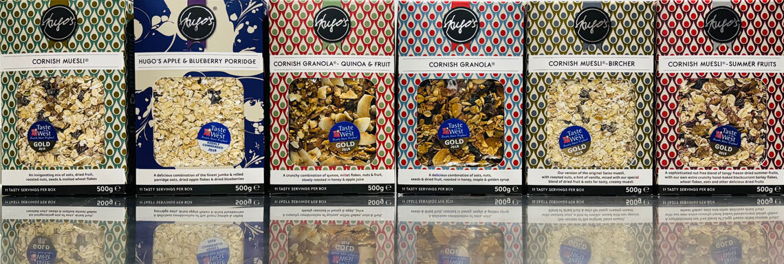 |   | Hugo's Cornish Granola £5.40£5.40 per 500g box plus P&PTaste of the West Gold Award. See About Hugo's Breakfast for details |