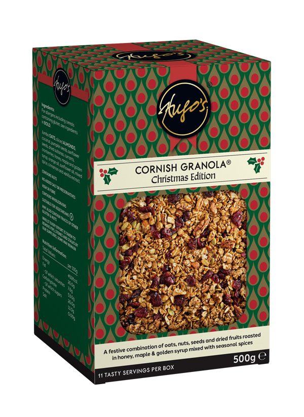 |   | Hugo's Cornish Granola Christmas Edition £5.90£5.90 per 500g box plus P&PLimited Edition - Available for Festive period only. The perfect Cornish Christmas gift. See About Hugo's Breakfast for details |