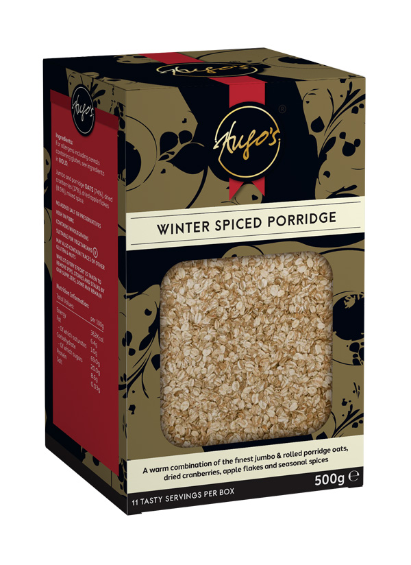 |   | Hugo's Winter Spiced Porridge £5.51£5.51 per 500g box plus P&PLimited Edition - Available for the Winter period only. The perfect way to keep warm this Winter. See About Hugo's Breakfast for details |
